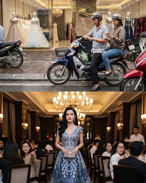 Cô bước vào cửa hàng. Chị chủ quán nhìn Mai, ánh mắt ban đầu có chút ái ngại vì vẻ ngoài khắc khổ của cô, nhưng rồi nhanh chóng nhận ra đường nét thanh tú ẩn sau gương mặt ấy. Chị kéo Mai lại phía góc phòng, lấy ra một chiếc váy lụa màu xanh rêu cổ điển, thiết kế tối giản nhưng ôm sát đường cong và có đường xẻ đùi tinh tế.