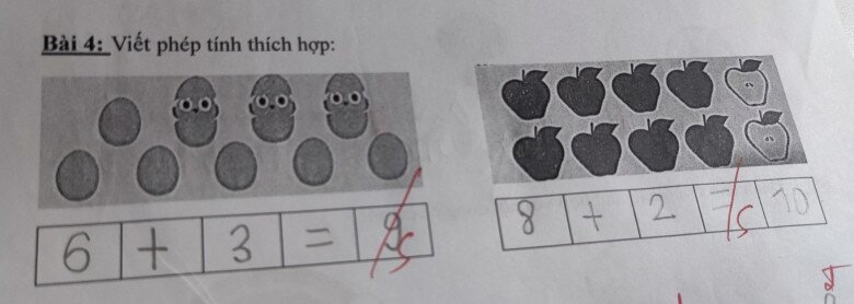Tuy nhiên, mọi việc không chỉ đơn giản như thế bởi cô giáo đã chấm “Sai” dưới 2 phép tính này.